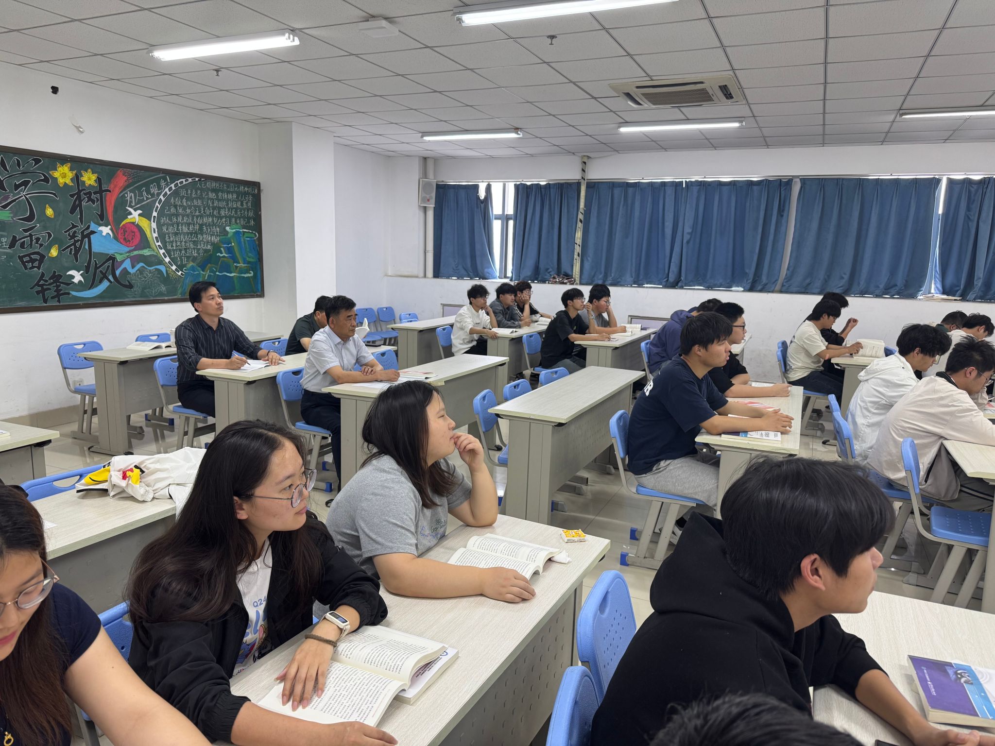 本网讯(马克思主义学院:沈成成 审核:葛军 佘东)5月23日下午,党委书记许卫深入教学一线,听取马克思主义学院章袖老师讲授的《习近平新时代中国特色社会主义思想概论》课程,马克思主义学院党政负责人陪同听评课。