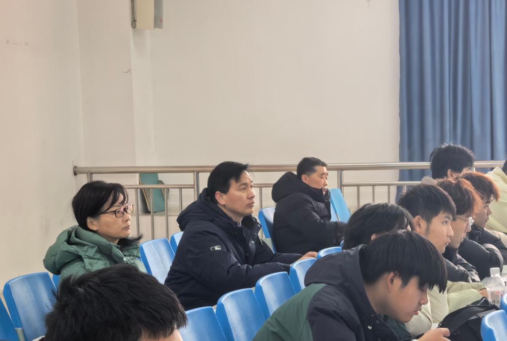 本网讯(马克思主义学院:沈成成 审核:葛军 佘东)为进一步加强学院思想政治工作,全面落实院领导联系思政课教师制度,提升思政课教学质量,12月13日上午,党委副书记、工会主席周和平深入课堂,听取了马克思主义学院朱国梁老师主讲的“毛泽东思想和中国特色社会主义理论体系概论”课程,马克思主义学院党政负责人陪同。