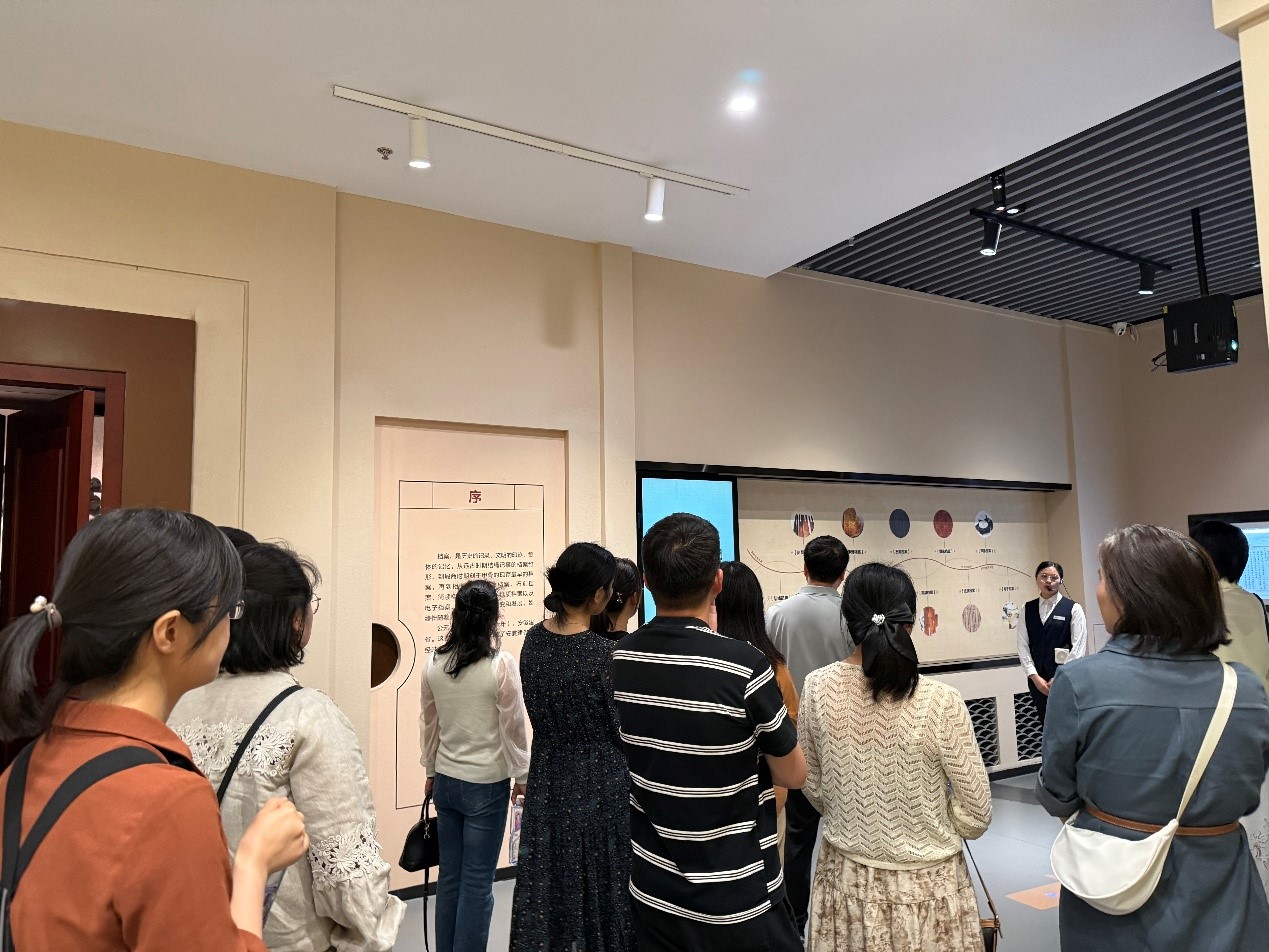 移步“千年‘徽’煌—徽州历史档案联展”,党员们仿若穿梭在千年的历史长河中。在宗族文化展区,精美的族谱、严谨的家规家训,生动展现了传统文化对个人品德塑造和社会和谐的重要意义;商业文明展区内,“徽商经营账簿” 吸引了众人目光,密密麻麻的账目记录,彰显出徽商“以诚待人、以信接物”的经营智慧。党员们热烈讨论,探讨着如何将徽商精神融入高校育人实践,培养学生的诚信品质与创新精神。面对精巧的徽派建筑微缩模型,大家赞叹于传统工匠的精湛技艺,交流着如何将传统美学元素融入校园文化建设。