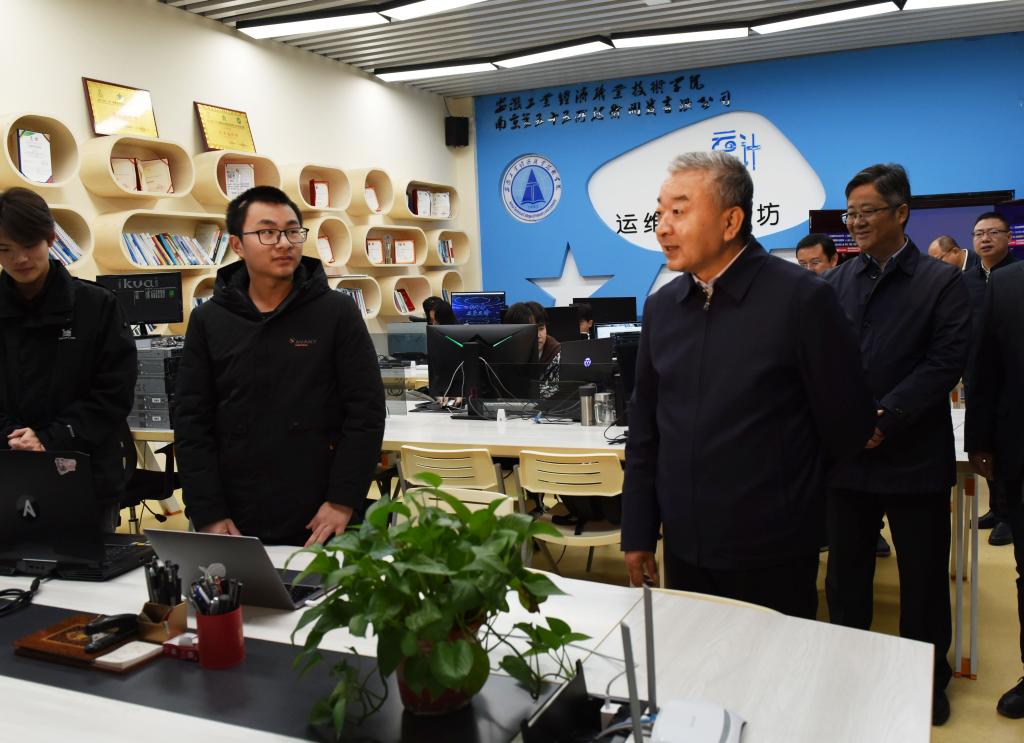 张西明一行到地质与建筑工程学院“宝玉石鉴定与加工”、计算机与艺术学院“计算机网络技术”两个省级高水平专业群建设单位调研,参观了岩矿标本陈列室,宝石加工、鉴定实训室,云计算运维工匠工坊和大数据与人工智能工匠工坊,听取二级学院负责同志关于学院专业建设、人才培养及办学成果等方面情况的汇报,对学院“校中厂”“工作室”的教学和人才培养模式创新给予肯定,鼓励全院师生在实践中学习,在学习中实践,不断夯实技能水平,提升服务社会能力。