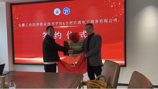 座谈结束后,双方举行了签约揭牌仪式,学院与合肥玖通电子商务有限公司的合作自此进入实质性推进阶段。