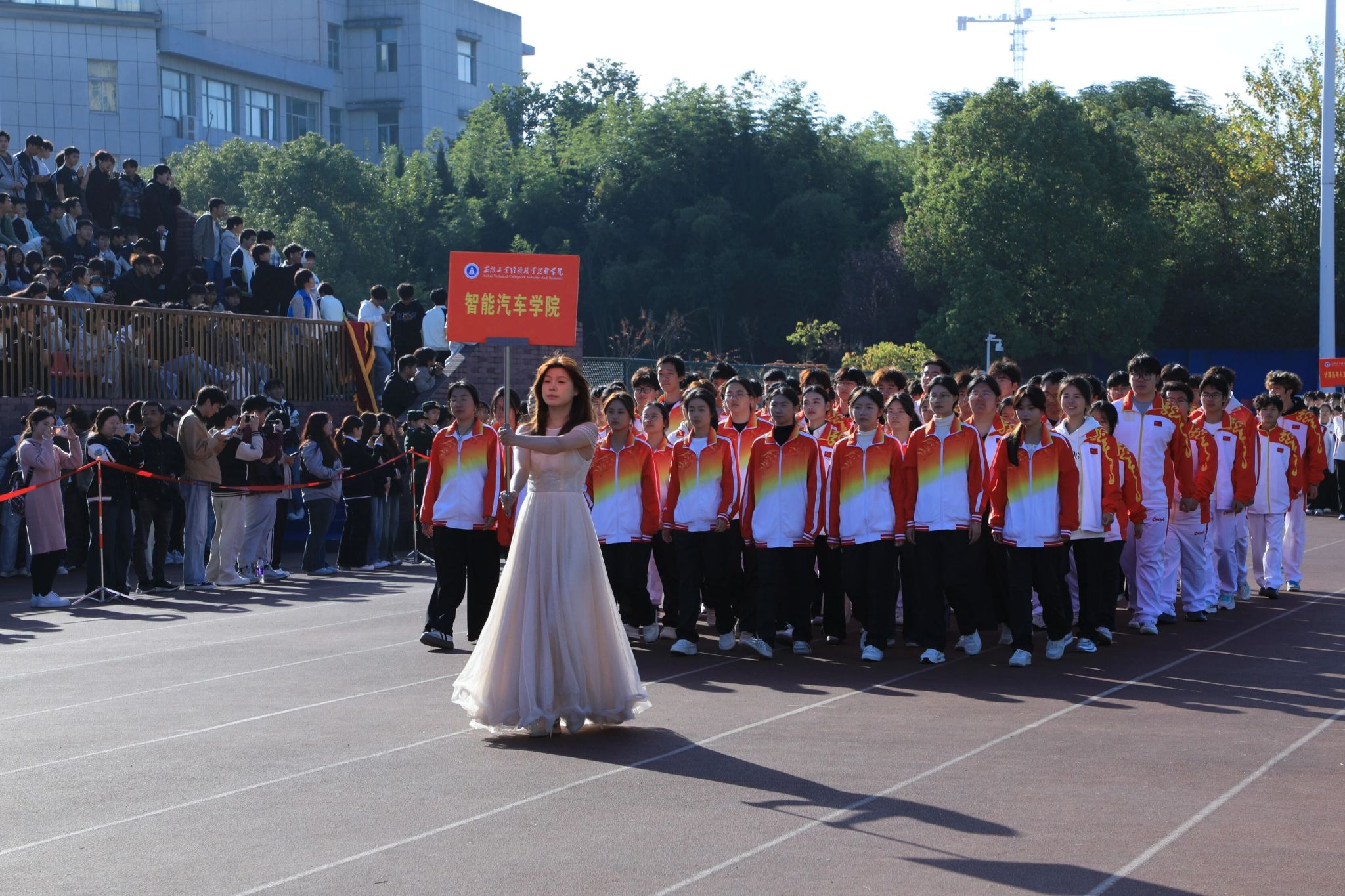 秋阳杲杲,惠风和畅。11月12日上午,学院第二十三届田径运动会开幕式在校园运动场举行。院领导许卫、刘仁金、周和平、黄雪飞、吴飞、赵凯出席,相关部门负责人、各二级学院党政负责人与师生代表共同参加。