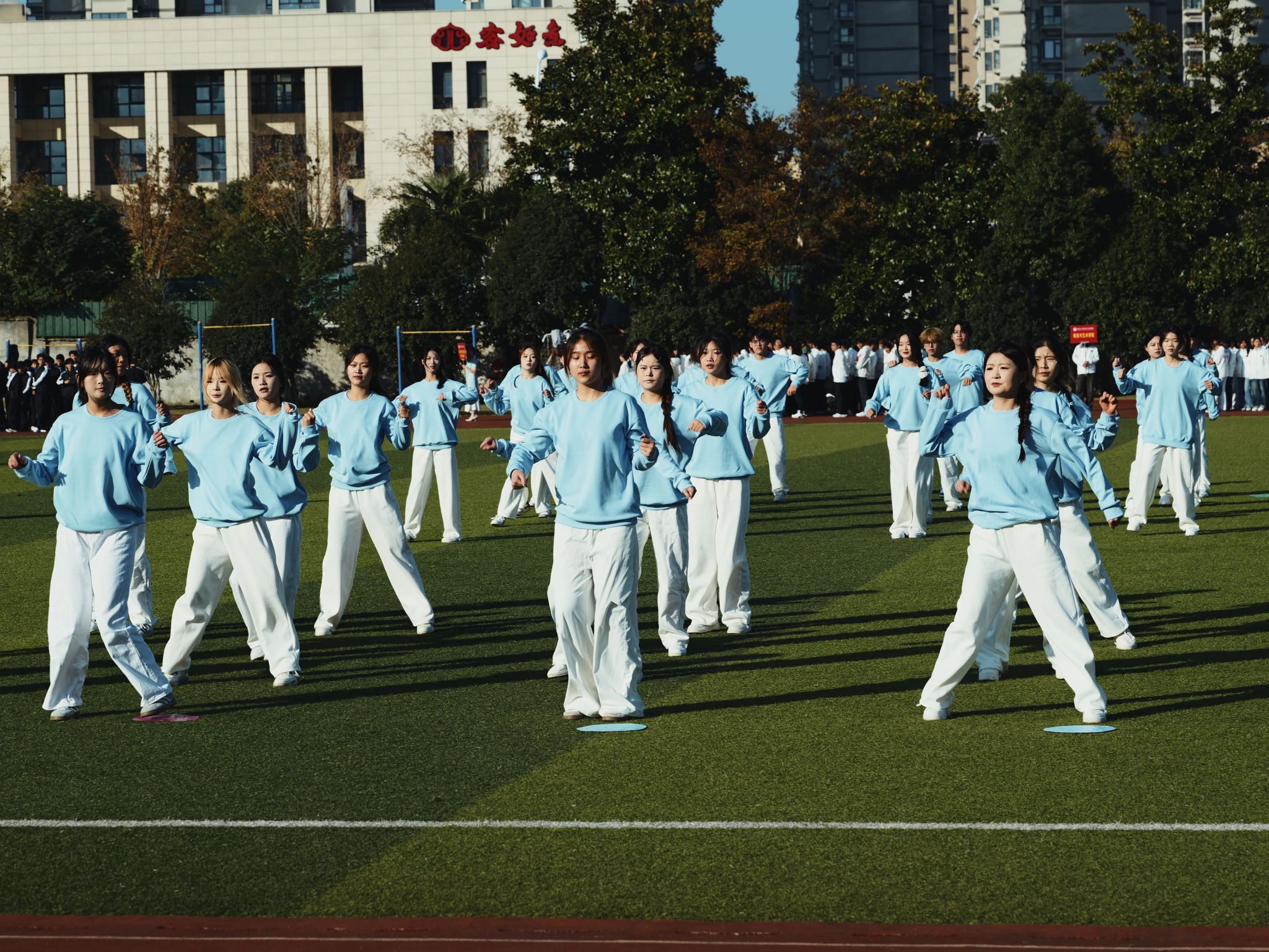 升旗仪式后,开幕式节目依次上演。活力四射的排舞表演展现了学子们的蓬勃朝气与团队协作精神;刚柔并济的八段锦演练,传递出中华传统健身文化的魅力;灵动飘逸的舞剑表演,一招一式尽显力与美的融合;最后,翻腾起舞的舞龙表演将现场气氛推向高潮,赢得了观众阵阵掌声,展示了学院浓厚的文化氛围和学生昂扬向上的精神风貌。