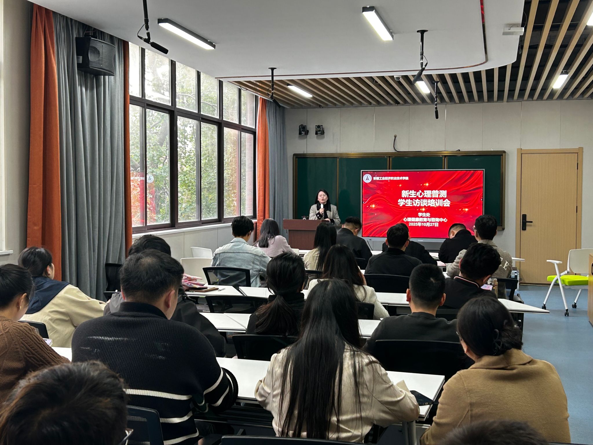 为做好普测后的访谈工作,精准对接不同群体工作需求,学校心理健康中心分对象开展专项培训:针对辅导员开展普测后访谈专项培训,从如何精准筛选访谈对象,到明确访谈目的、规范访谈流程一一进行实例演示,为辅导员提供手把手示范,既提升了辅导员的谈心谈话能力,也深化了他们对学生心理工作的责任认知;面向专兼职心理咨询师开展专题培训,提升其心理信号识别、协同支持的专业素养。此次“精准分层、靶向发力”的两步走培训,既强化了全校教师心理健康工作的协同意识,又显著提升了心理服务的时效性与针对性。