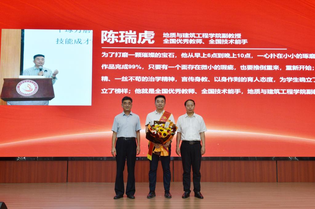 师资队伍量质齐升。大力弘扬教育家精神,构建以教师队伍思想政治建设为主体,师德师风养成和专业素养提升为两翼的队伍建设格局,实现队伍量质齐升。五年来,印发《学院建立健全师德建设长效机制实施细则》等相关文件9份,组织教师赴安徽名人馆等教育基地开展专题实践教育培训,把师德师风纳入教师系列考核,全院教师坚守师德底线,弘扬优良作风,全身心投入育人实践。引育硕博研究生以上教师155名,新增教授11人、副教授45人,人才集聚效应倍增。新增全国工人先锋号教学团队1个,国务院政府特殊津贴1人,全国优秀教师、全国技术能手各1人,省级技能大师工作室、知名工匠培养基地等5个,省级教学团队3个,省优秀教师2人,省级教学名师4人,省技术能手11人。联合主持国家级专业教学资源库3个,参与3个;主持省级教学资源库2个。新增“十四五”职业教育国家规划教材2本。入选工信部“工业信息安全”人才培养专项行动计划实施单位、德国博世应用型和技术技能型人才培养合作试点项目等。教师团队获安徽省创新大赛一等奖5项、二等奖8项,获安徽省教师教学能力大赛一等奖5项,二等奖16项。获批省级教学改革研究项目36项,获省级教学成果特等奖1项、一等奖1项、二等奖7项。宝玉石鉴定与加工专业教学创新典型案例、“职”为你来——择业就业三部曲课程思政典型案例获“六百工程”认定,教师队伍整体水平不断提升,保障育人工作更加有力。