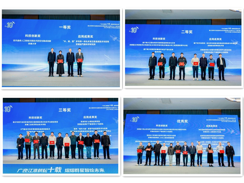 会上,《安徽省高分专项应用及发展蓝皮书(2016-2025)》正式发布,系统梳理了过去十年安徽省高分专项的应用成果与发展经验,为高分事业高质量发展提供了重要参考。高分安徽成果推广平台同步上线,将进一步畅通高分成果共享渠道,助力高分技术更广泛地服务于各行业领域。会议还对高分安徽优秀成果进行了表彰,颁发相关奖项,激励更多单位和个人投身高分应用创新实践。