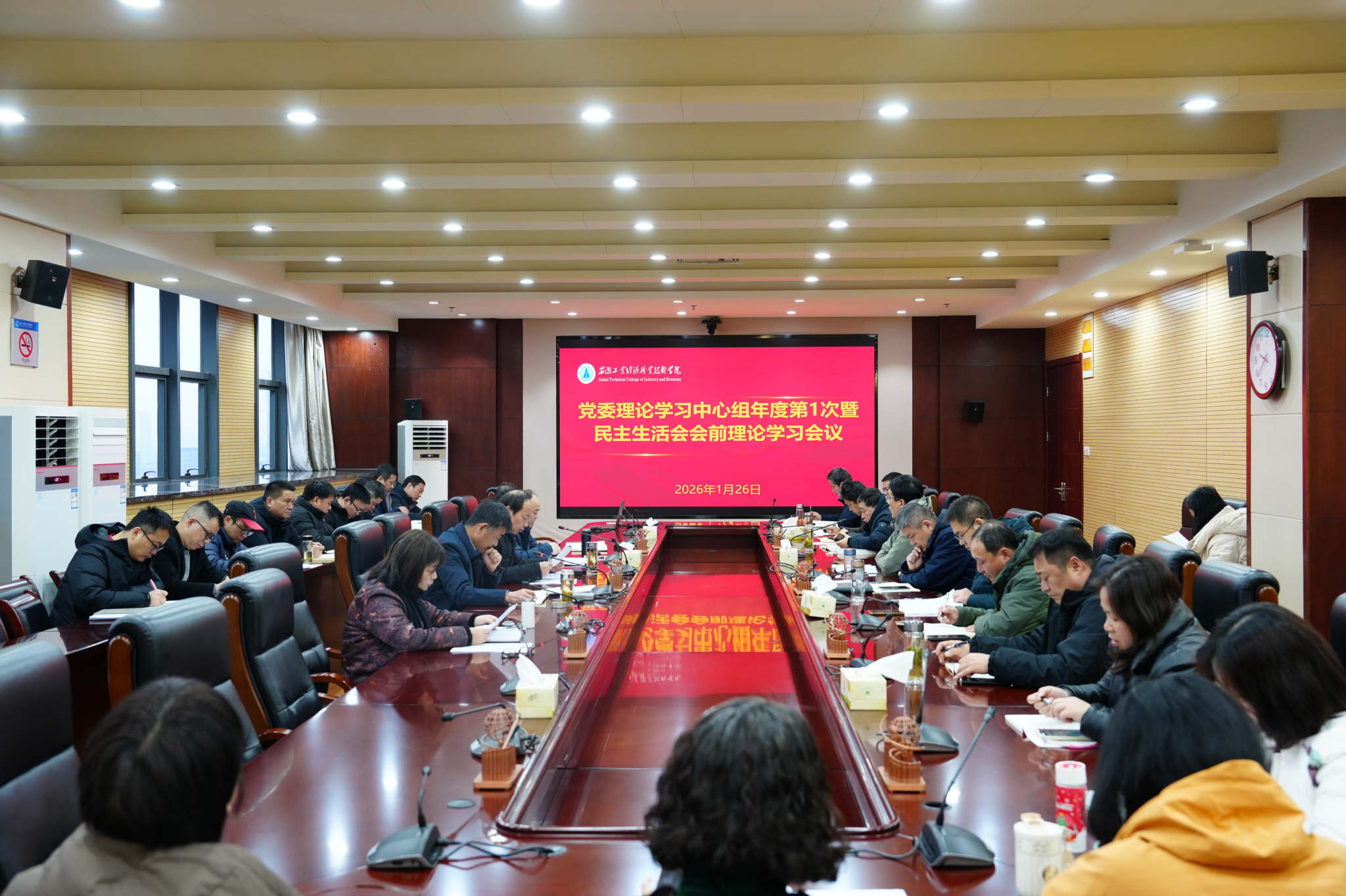 1月26日上午,学院党委理论学习中心组召开2026年第1次暨民主生活会会前理论学习会。党委书记、理论学习中心组组长许卫主持会议并讲话。党委理论学习中心组成员出席会议并领学相关内容。各二级学院党政主要负责人、各部门主要负责人参加会议。