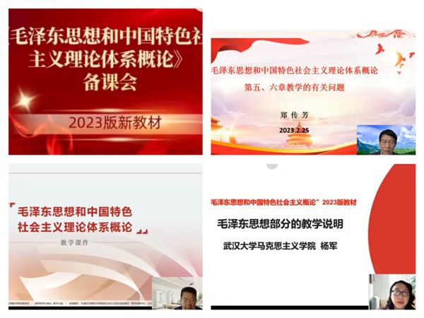 此次备课会邀请的三位专家学者均为中央马克思主义理论研究和建设工程或教育部高校思政课教指委等领域专家,他们围绕新教材概况、指导思想、基本精神、总体要求、新特征,教材内容的逻辑架构、章节的变动及其依据,新教材教学重难点、教学理念、教学思路、教学建议、教学质量提升有效方式探索等方面进行备课研讨。其中,兰州大学刘先春教授领衔开展《毛泽东思想和中国特色社会主义理论体系概论(2023 版)》第七、八章解读;福建师范大学郑传芳教授探讨《毛泽东思想和中国特色社会主义理论体系概论(2023 版)》第五、六章教学的有关问题;武汉大学杨军教授主讲《毛泽东思想和中国特色社会主义理论体系概论(2023 版)》教材毛泽东思想部分的若干说明。