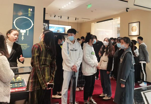 本网讯(地质与建筑工程学院供稿)2021年11月21日上午,地质与建筑工程学院党总支副书记张博,专业教师李孔亮、陈节带领宝玉石鉴定与加工专业学生到合肥淮河路步行街老凤祥总店参观学习。