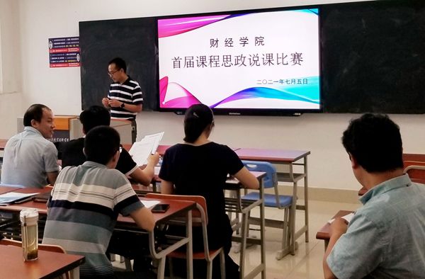 本网讯(财经学院供稿 审核:佘东)为进一步落实教育部《高等学校课程思政建设指导纲要》和学院《关于“课程思政”说课比赛的通知》相关文件要求,7 月5日上午,财经学院在主教608教室举办了财经学院首届“课程思政”示范课说课比赛,特邀马克思主义学院院长刘仁三、教务处实践科科长韩瑞、马克思主义学院教学秘书王天意作为本次比赛评委,比赛由财经学院院长胡成科主持,财经学院部分教师现场观摩了比赛。