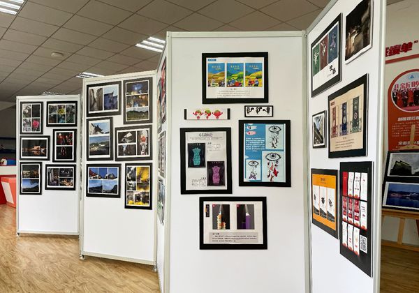 本次展览由王悦娟和查玮玮老师指导学生完成,从500多名同学的作品中精选出100余幅作品参展,展览以“海报设计作品”“西递写生绘画作品”“摄影作品”“课堂优秀作品”等艺术形式展出,主要分为四个展区,分别是红色主体艺术设计作品展、书画教育作品展、学生西递写生和专业采风作品展。