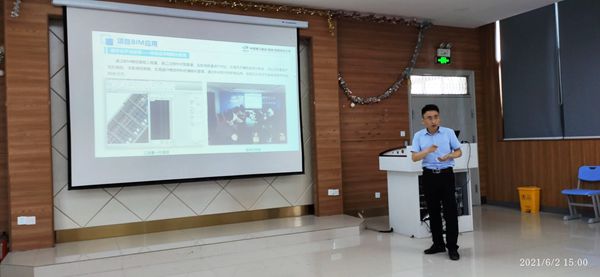 中煤矿山建设集团有限责任公司隶属于安徽省国资委,是一家跨行业、多元化经营的大型施工企业集团。丁飞,现任市政工程公司总工办主任,负责企业科技与创新、技术研究开发、BIM应用相关工作。先后主导及参与十余项企业科研项目,主导的《城市地铁盾构接收微冻结施工技术》为企业节约成本四百余万元,申报了四十余项国家专利及核心论文,2015年获得安徽省国资委“拔尖人才”荣获称号,获得多项省市、行业BIM奖项。丁主任从“什么是BIM”,“为什么使用BIM”,“BIM的现在和未来”,并以中煤三建承建的合肥地铁五号线北一环车站项目为例,介绍了BIM在实际项目中开展的效果。丁主任在讲座中强调同学们学习BIM软件的同时,也一定加强工程图纸的理解和施工现场经验的积累。