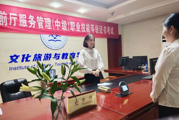 本网讯(文化旅游与教育学院供稿 审核:王厚红)为贯彻落实《国家职业教育改革实施方案》要求,推动职业技能等级标准与专业教学标准有机衔接、岗位工作内容与课程教学内容融合、岗位能力与专业能力对标,提升学生综合职业技能,6月17至18日,文化旅游与教育学院先后开展“1+X”餐饮服务管理(中级)和“1+X”前厅运营管理(中级)职业技能等级证书考试,2022级酒店管理与数字化运营专业12232班共计40名在校生参加了考试认证。