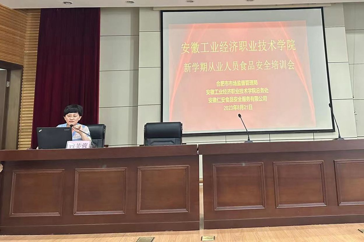 学院邀请合肥市市场监督管理局餐饮服务安全监管处处长戴芙蓉做《学校食堂食品安全管理要点》专题培训讲座。讲座深入解读校园食品安全管理的重要性,从学校食品安全现状、食品安全管理控制环节、餐具清洗消毒关、三季度餐饮食品安全风险及对策等方面对食堂从业人员进行培训和指导,并就食品安全方面的常见问题和应对措施进行了详细讲解。