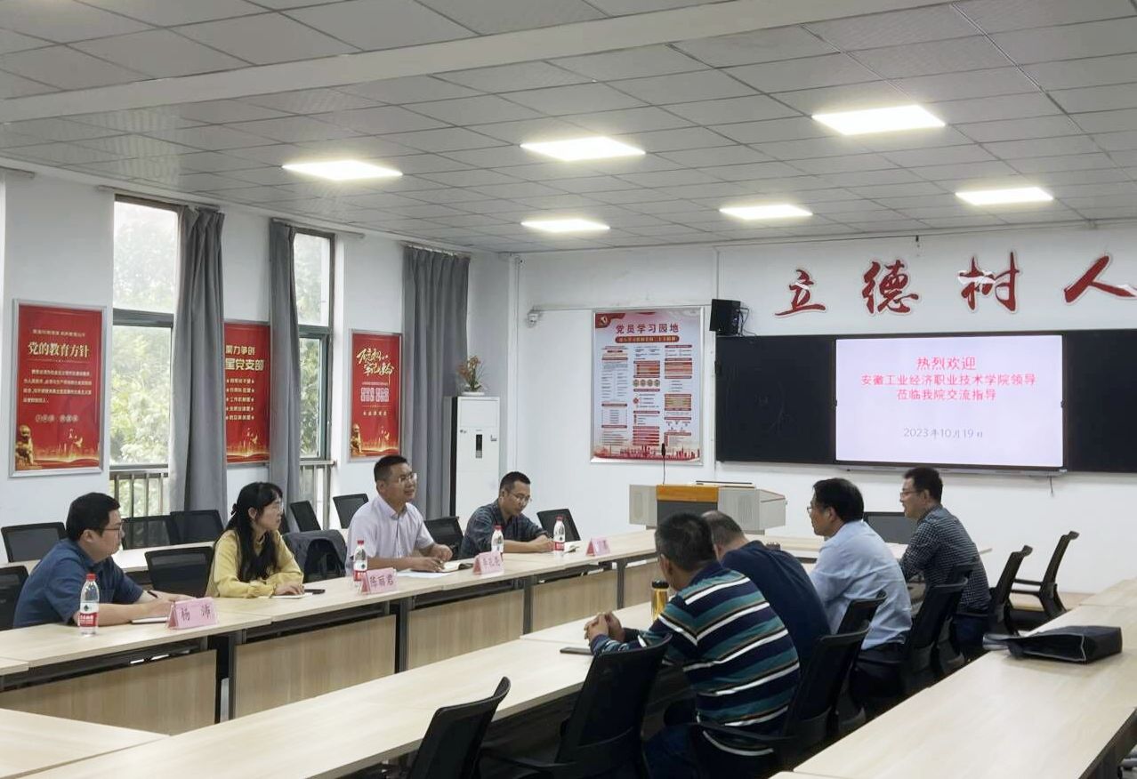 安徽水利水电职业技术学院水利工程学院专业老师沈刚,地质与建筑工程学院建筑教研室主任陈墨、专业负责人杨沛和陈丽君陪同座谈和参观。