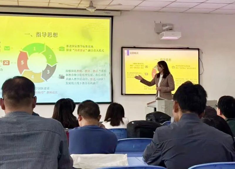 金创利教育事业团队为在场的教师们介绍了“1+X不动产数据采集与建库职业技能等级标准”以及“中国国际互联网+大学生创新创业大赛产业命题赛道解析与探索”专题内容,通过介绍与解析,有助于提升教师们对“1+X”证书和创新创业大赛工作的理解,为行业人才培养提供了重要参考。