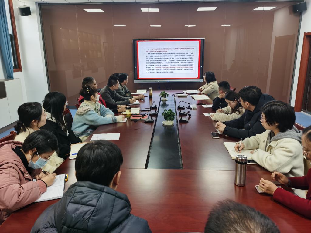 本网讯(马克思主义学院:李燕 审核:肖勇 佘东)为深入学习贯彻习近平文化思想,做好习近平新时代中国特色社会主义思想文化宣传工作,12月6日,马克思主义学院党总支召开习近平文化思想专题学习会,会议由马克思主义学院党总支书记肖勇主持,马克思主义学院副院长刘仁三讲授主题党课,马克思主义学院全体党员教师参加。
