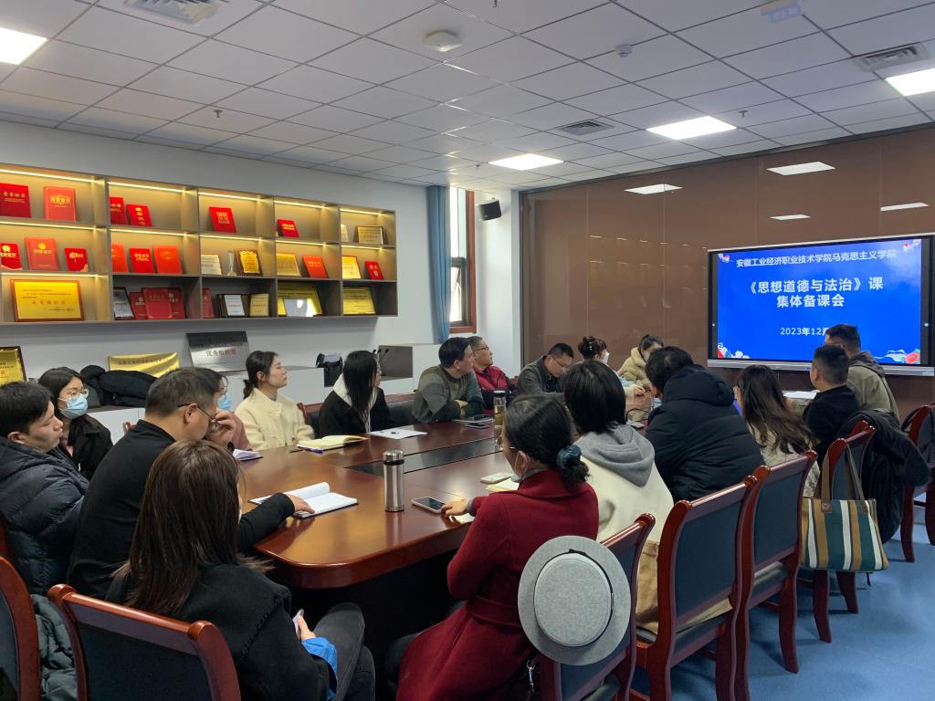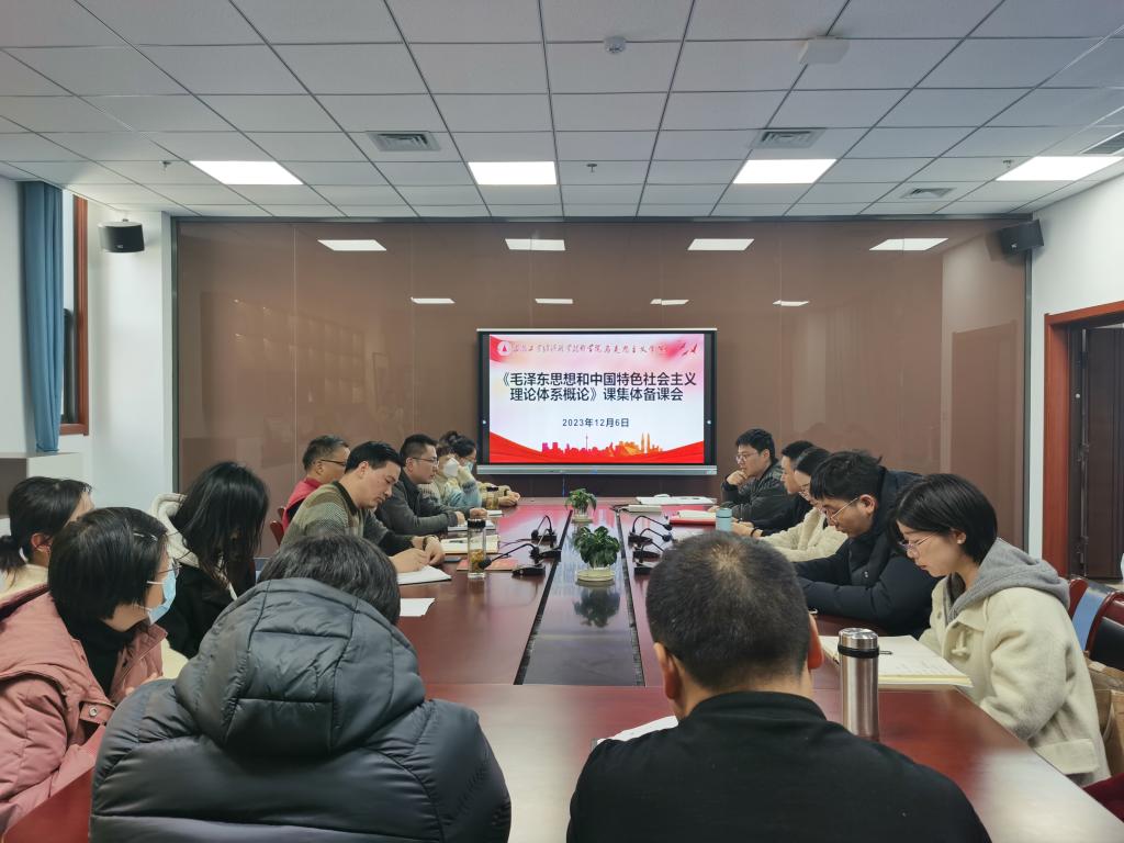 本网讯(马克思主义学院:汤静 审核:肖勇 佘东)12月6日,马克思主义学院“思想道德与法治”和“毛泽东思想和中国特色社会主义理论体系概论”两个教研室在图书馆会议室共同开展了本学期第五次集体备课,马克思主义学院副院长刘仁三出席,两个教研室全体教师参加,备课会由教研室主任主持。