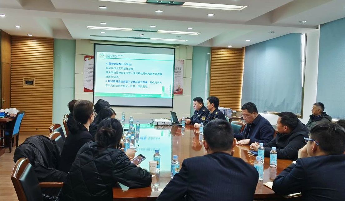 本网讯(总务处:盛勇 审核:张俊峰 佘东)为切实保障广大师生饮食安全,进一步强化学院食品安全工作,3月27日下午,学院邀请淝河市场所、包河区市场监管局执法大队发挥联动作用,为总务处膳食科以及为学院提供餐饮服务的四个餐饮公司负责人、公司采购人员进行集中培训,培训主要内容为:校园食品安全监管、食用农产品市场销售质量安全监督管理办法、经营者采购食用农产品进货查验记录工作指引等。