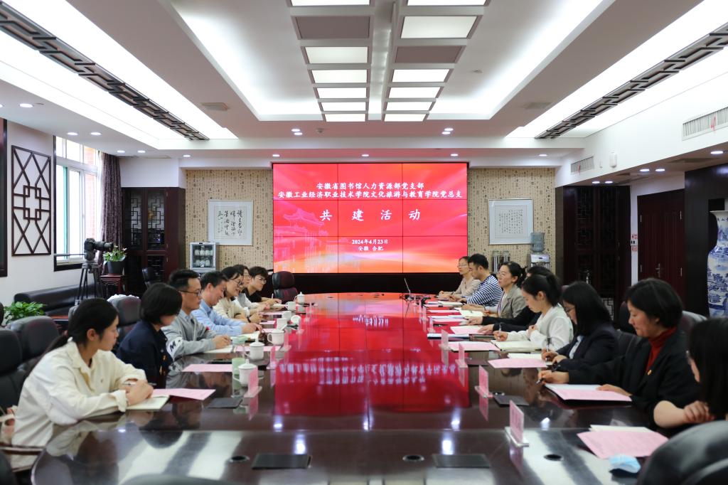 参观结束后,双方人员在安徽省图书馆人力资源部党支部副书记陈孟琦带领下学习了《中国共产党纪律处分条例》,随后进行了交流研讨。双方党组织负责人分别介绍了党组织概况、发展历程、党建工作经验成效等,并对党建合作、专业技术支撑、人才培养合作等达成了共识。