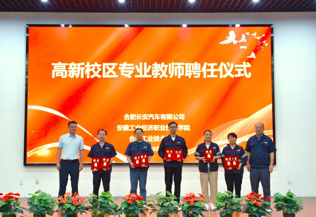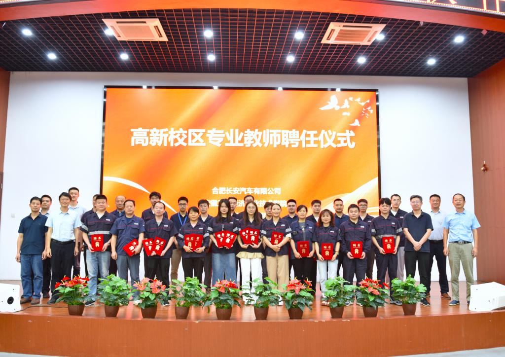 合肥长安人力资源处培训策划专家刘干,合肥长安人力资源处招聘专家袁华明,星空电竞官网计算机与艺术学院副院长朱晓彦、机械与汽车工程学院副院长史召峰、电气工程学院党总支副书记郭强,合肥工业技术学校副校长孟庆海、教务科科长段剑伟、办公室副主任王士友出席仪式。