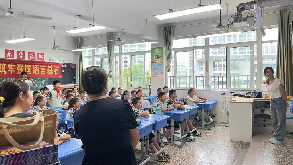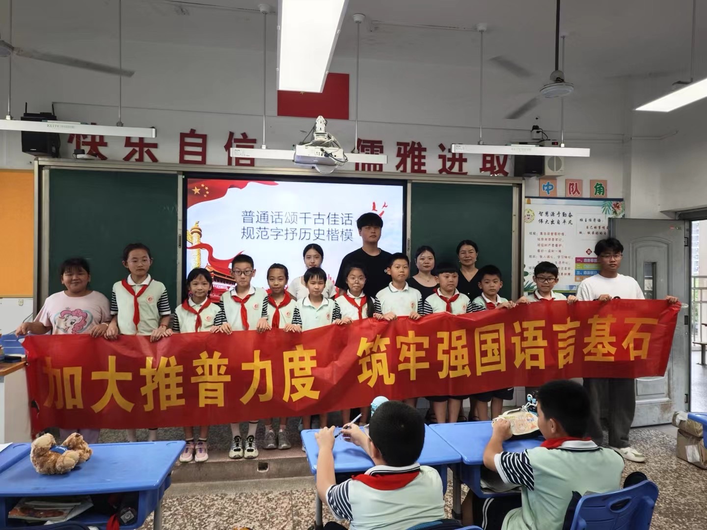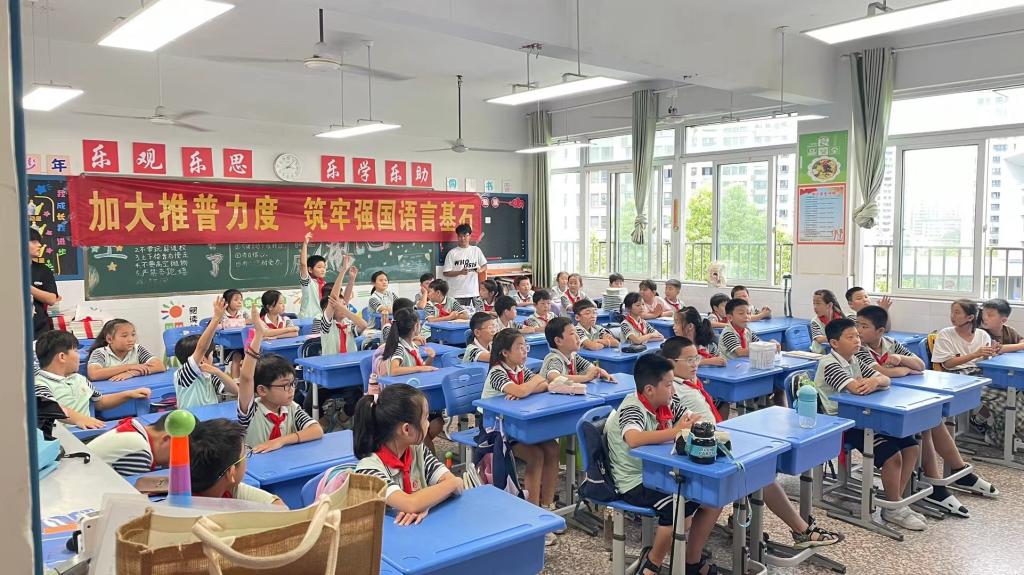 课堂照耀汉字之美,教育点亮母语之光。来自商贸学院42344班张雯雯同学以《普通话颂千古佳话规范字抒历史楷模》为题,为葛大店小学四(2)班40余名学生带去一场精彩的专题讲座。她以生动的语言讲解了什么是普通话、为什么要学习普通话、如何学习普通话以及普通话的训练示范等内容,通过绕口令等形式为小学生们示范普通话发音训练,小听众们积极参与,气氛热烈,在寓教于乐的氛围中结束讲座。