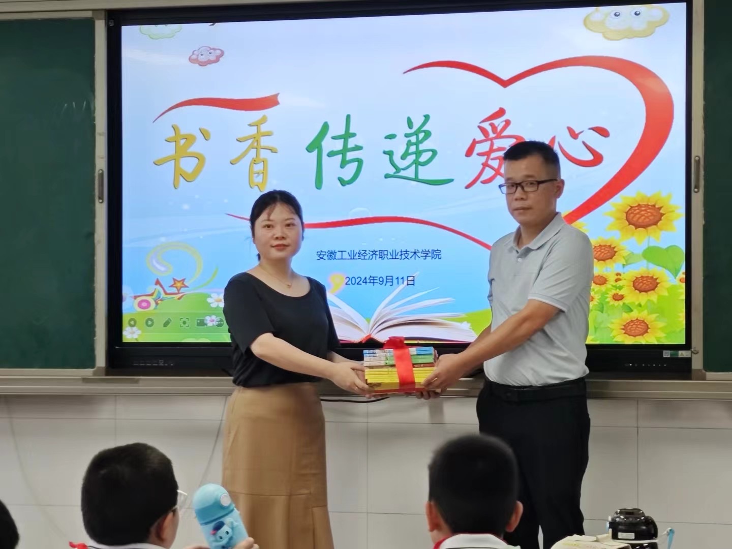 本网讯(图书馆:张凤 审核:刘红祥 佘东)9月11日下午,学院第27届普通话宣传周系列活动——推普进小学活动在包河区葛大店小学顺利开展。图书馆负责人刘红祥,张凤老师带领学生赴葛大店小学开展普通话培训讲座并向小学生捐赠图书。