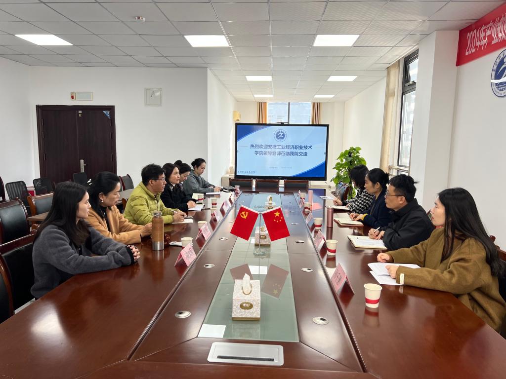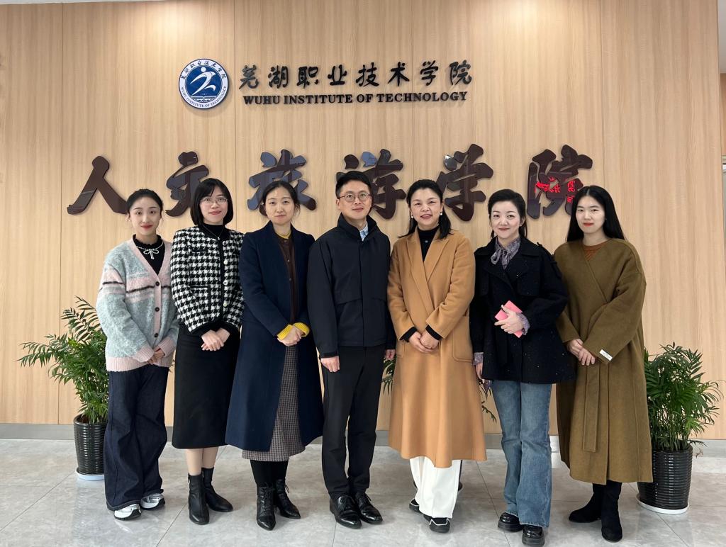 本网讯(文化旅游与教育学院:褚曙 胡瑞明 审核:邱竹青 佘东)美育是五育并举的重要一环,是落实立德树人根本任务的重要途径。为进一步学习美育教育先进经验,为学院美育工作发展提供有益借鉴和参考,11月21日下午,由学院教务处副处长韩瑞、文化旅游与教育学院党总支副书记邱竹青、文化旅游与教育学院教学秘书胡瑞明及青年教师褚曙、孙千惠组成的考察团,前往芜湖职业技术学院人文旅游学院进行考察交流。