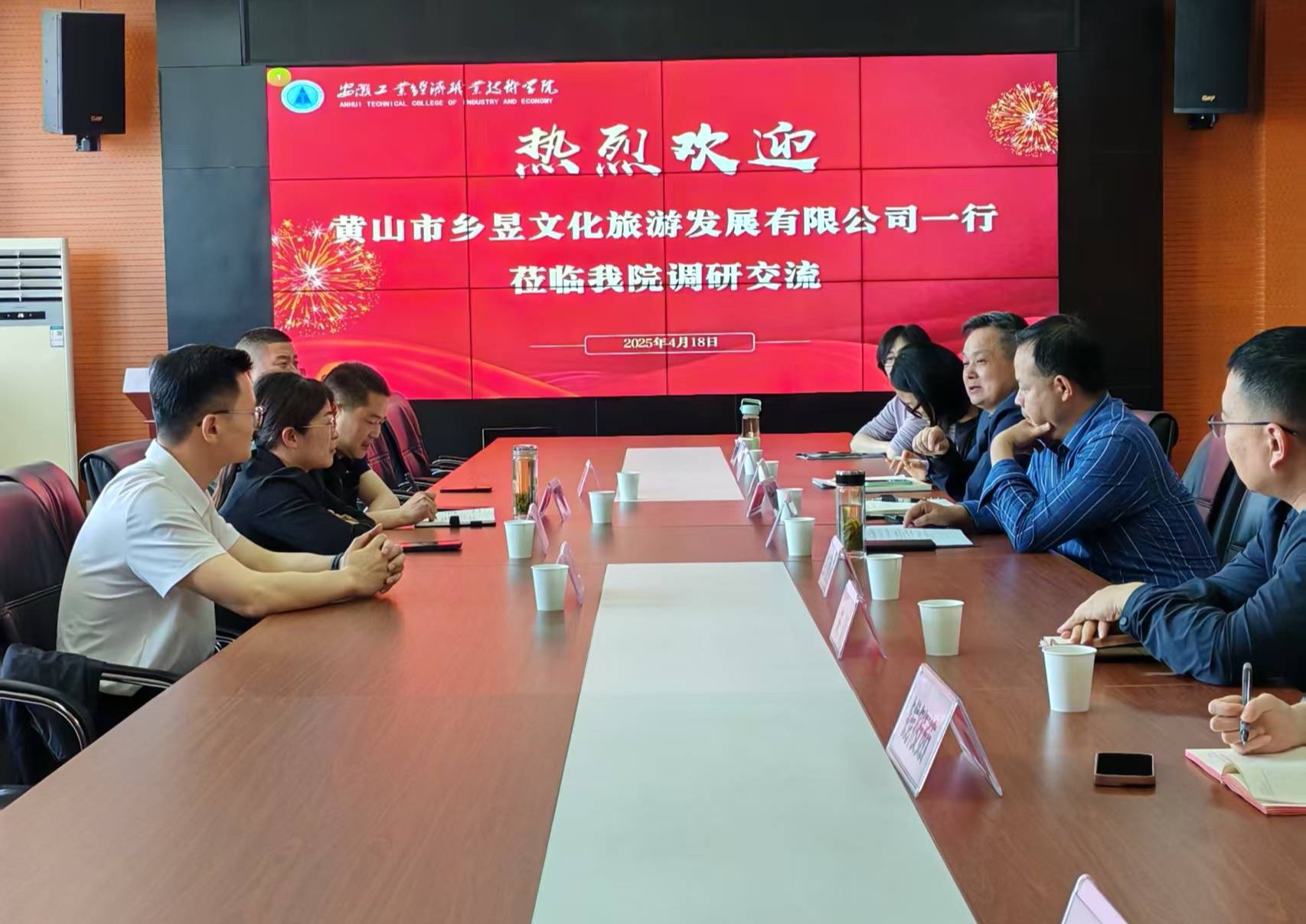 本网讯(商贸学院:左丁丁 审核:宋庆福 佘东)2025年4月22日,黄山市乡昱文化旅游发展有限公司董事长吴俊一行到商贸学院调研交流,共同探讨电商人才培养与文化旅游融合发展。商贸学院、文化旅游与教育学院、信息发展处等单位主要负责人参加座谈。