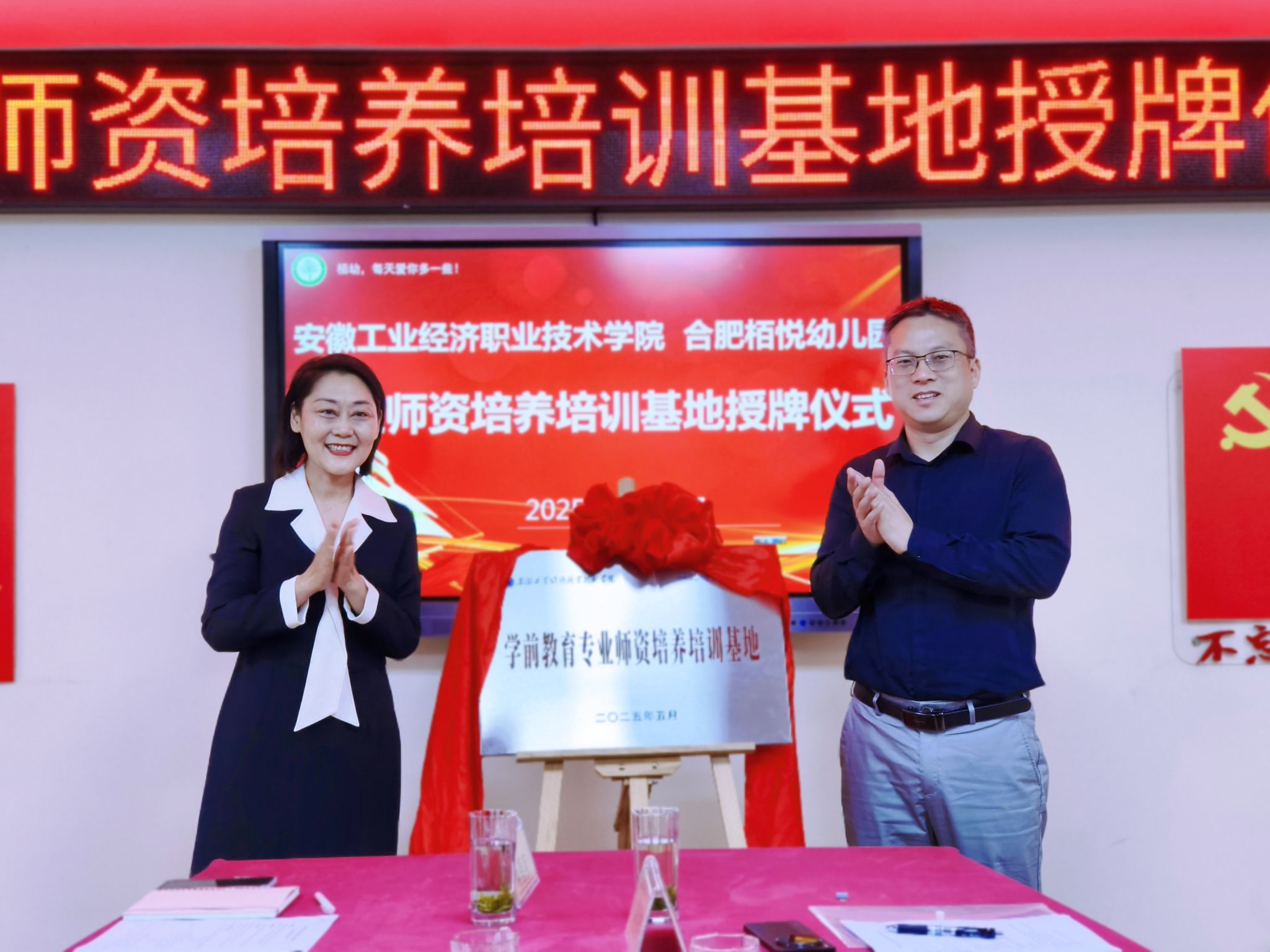党委委员、副院长吴飞(右),合肥柏悦幼儿园园长李晓红共同为基地揭牌
