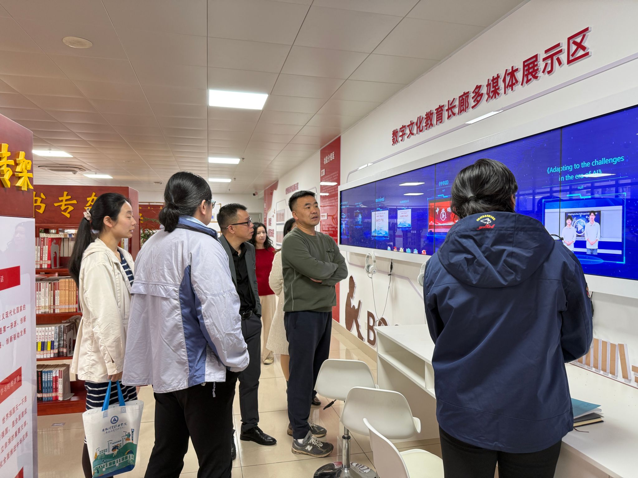 会上,图书馆负责人对安徽财贸职业学院图书馆一行的到来表示欢迎。他介绍了我院图书馆新馆的建设历程、发展情况以及近年来在图书馆管理与创新服务方面所做的相关工作,指出,图书馆作为学校的“第二课堂”,在服务育人、文化育人方面所承担的重要角色,表示,作为邻居和兄弟院校,相互学习借鉴是提升两馆工作水平的重要手段。藕海云对学院新图书馆的设计理念、功能布局及建设思路表示高度认可,并表示此次考察的重点是学习星空电竞官网图书馆在新馆功能布局、智慧图书馆建设以及阅读文化建设方面的的经验,希望通过学习交流不断提升安徽财贸职业学院图书馆建设质量和服务水平。