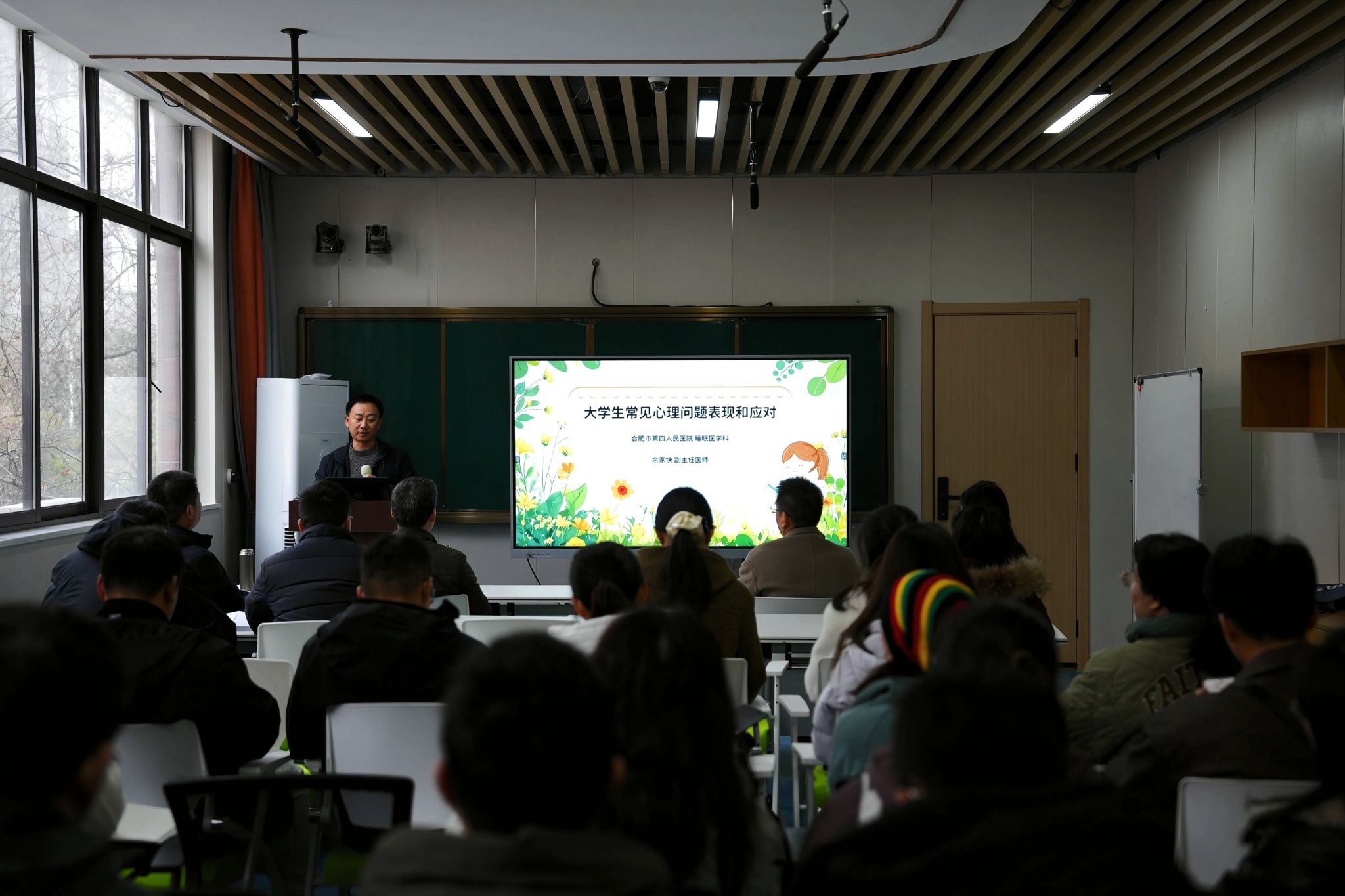 为总结2025级新生心理访谈成效、提升心理育人队伍专业能力,12月12日,我校在心理健康中心召开新生心理访谈专项反馈总结会。学生处处长张博,部分二级学院书记、辅导员及心理中心专兼职老师参会,合肥市第四人民医院副主任医师余家快受邀授课指导。