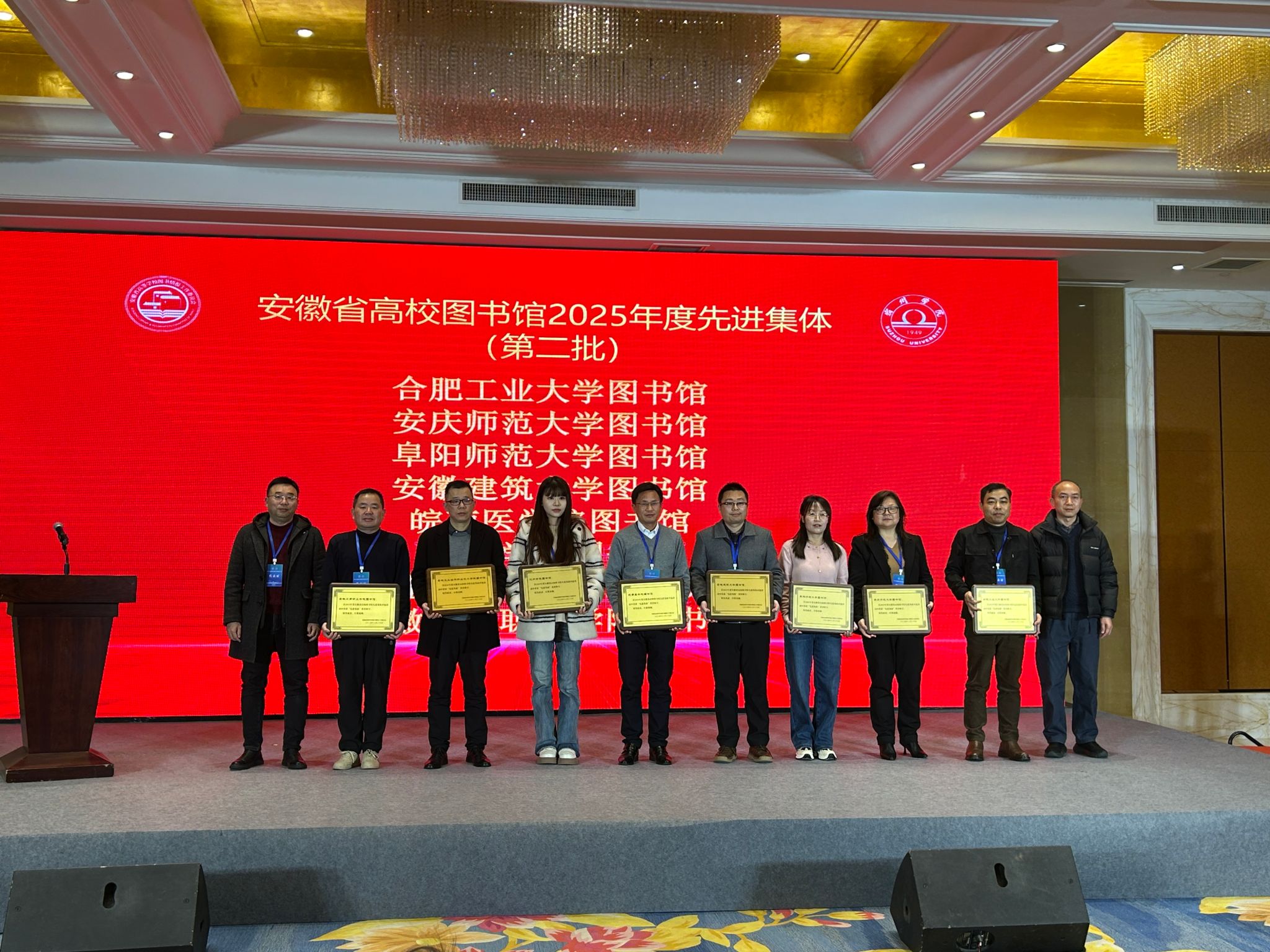 1月8日至10日,2025年安徽省高校图书馆馆长年会在宿州市举行。省委宣传部、省教育厅相关领导出席指导,来自全省60余所高校的120余名图书馆负责人及馆员参会。学院图书馆荣获安徽省高校图书馆2025年度“先进集体”称号,图书馆负责人刘红祥荣获“优秀馆长”称号。