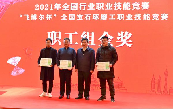 本网讯(地质与建筑工程学院供稿 审稿:佘东)12月21日,由国家人社部开展,中国轻工业联合会、中国轻工珠宝首饰中心、中国就业培训技术指导中心、中国财贸轻纺烟草工会全国委员会共同主办,晋江海峡职业培训中心、北京经济管理职业学院联合承办的2021全国珠宝玉石检测制作职业技能竞赛 “飞博尔杯”全国宝石琢磨工职业技能竞赛总决赛在北京经济管理职业学院落幕。学院2021届宝玉石鉴定与加工专业毕业生杨听、黄进生在比赛中分别取得职工组第一、二名,荣获职工组金奖,并被授予“全国技术能手”荣誉称号。