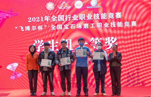 本网讯(地质与建筑工程学院供稿 审稿:佘东)12月21日下午,2021年全国珠宝玉石检测制作职业技能竞赛“宝石琢磨工”总决赛在北京经济管理职业学院落下帷幕。在陈瑞虎老师的带领下,地质与建筑工程学院宝玉石鉴定与加工专业学生耿创创、陈景课、杨家辉、王梓豪分别获得了学生组全国一等奖两项,二等奖、三等奖各一项的优异成绩。