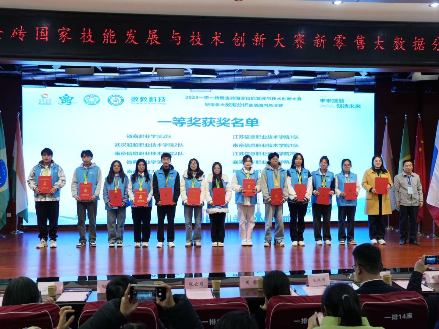 本网讯(商贸学院:田欣 审核:张善智 佘东)11月24至26日,2023“一带一路”暨金砖国家技能发展与技术创新大赛新零售大数据分析赛项国内赛决赛在徽商职业学院举行,来自全国17个省份73所本专科院校共121支队伍参加比赛。经过激烈的比拼,星空电竞官网许文洁、雷嘉玉两位同学荣获团体一等奖,武迪、田欣两位老师获优秀指导教师,学院获大赛最佳组织奖。