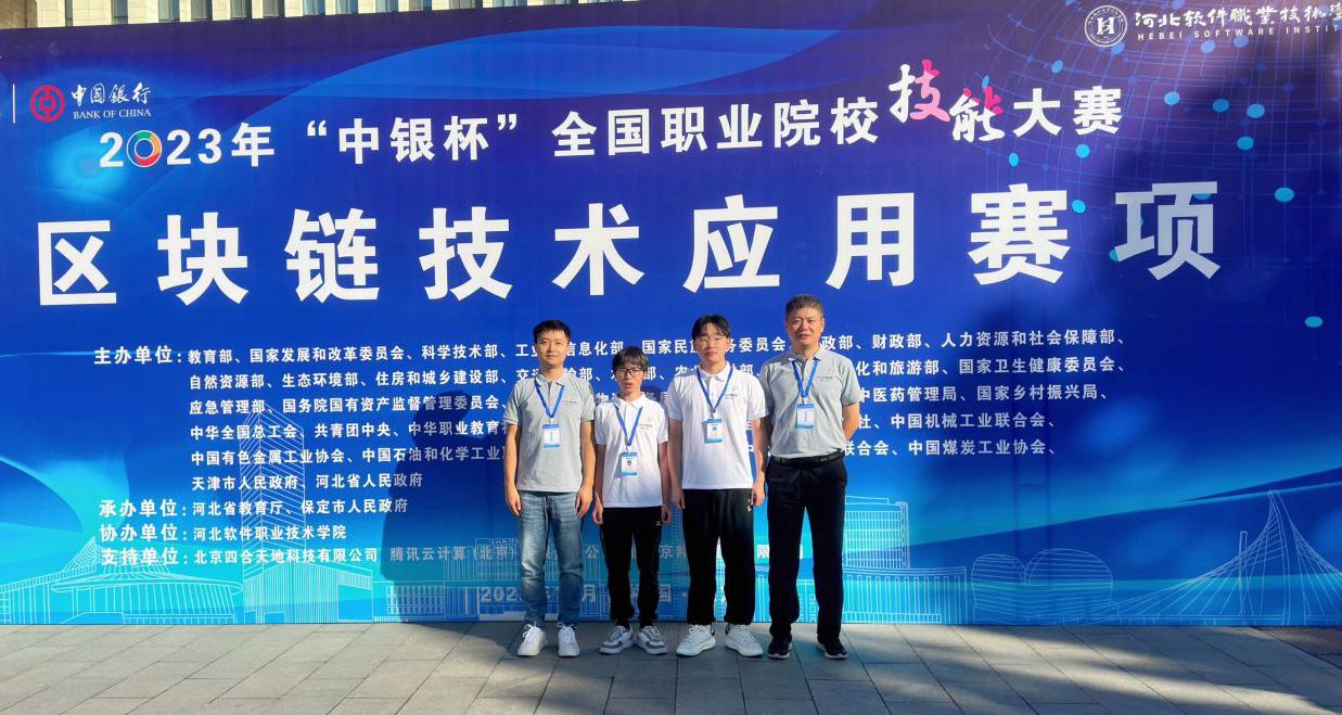 本网讯(计算机与艺术学院:甄扬 审核:葛军 佘东)10月20日,2023年全国职业院校技能大赛(高职组)区块链技术应用赛项在河北软件职业技术学院落下帷幕,星空电竞官网计算机与艺术学院甄扬、佘东老师指导,宋志剑、张家辉同学组成的参赛队以团体总分第四名的好成绩荣获该赛项一等奖。