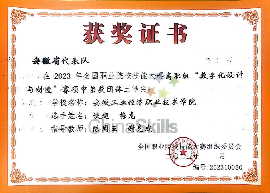 【技能大赛】学院荣获2023年全国职业院校技能大赛数字化设计与制造赛项团体三等奖