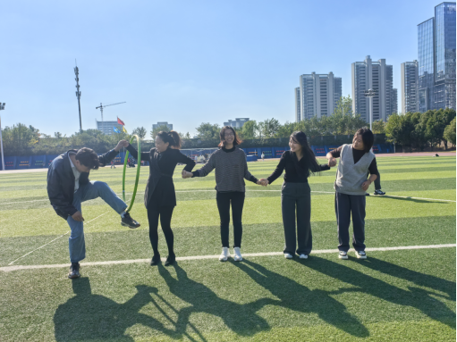 本届教职工趣味运动会分团体赛和个人赛两部分,个人赛包含一分钟跳绳、一分钟踢毽子、“手脚并用”,团体赛项目有“同心击鼓”“智传呼啦圈”“飞盘九宫格”。项目新颖有趣,充分调动了教职工们的肢体协调能力和团队合作能力。赛场上,老师们精神抖擞,充满活力,现场掌声、高呼声、欢笑声此起彼伏。运动中的教职工们把日常繁重劳累的教学科研和工作任务暂时放下来,充分享受了运动带来的喜悦和快乐,展现出团结协作、健康积极的精神面貌。