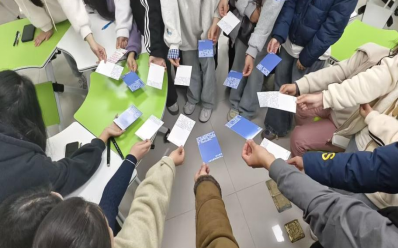 活动现场还设置了“漂流明信片”活动,同学们将书中饱含哲理的话语写在明信片上,互相交流,传递知识与温暖。