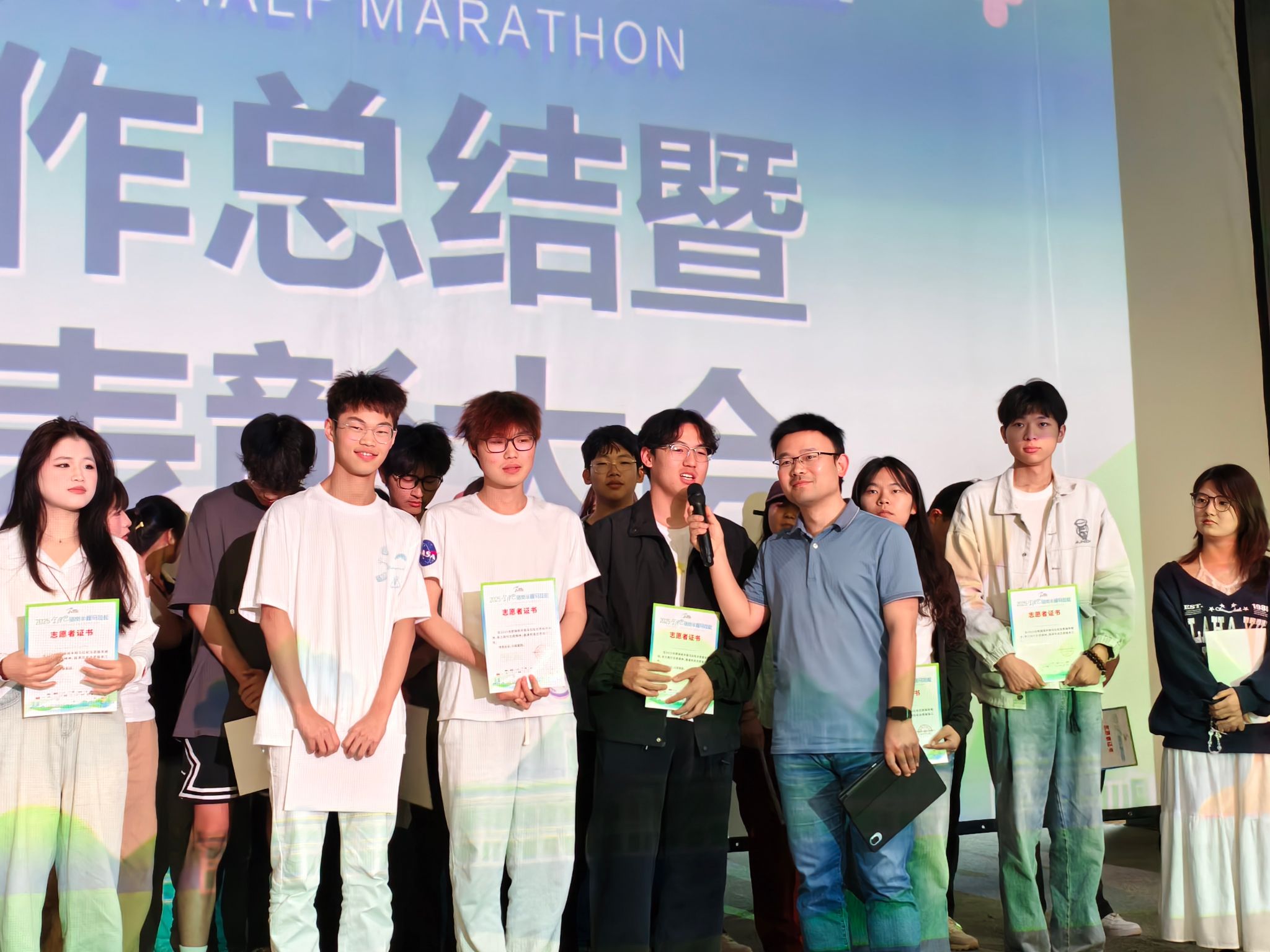随后,校团委老师及各二级学院团总支负责人依次为志愿者们颁发了荣誉证书。现场气氛热烈,掌声雷动,每一位受表彰的志愿者和团队代表都面带自豪的笑容,接过这份荣誉。颁奖期间,志愿者代表分享了自己在志愿服务中的收获和感悟。他们表示,参与这次马拉松志愿服务不仅让自己得到了锻炼,更让他们深刻体会到了帮助他人的快乐和意义。