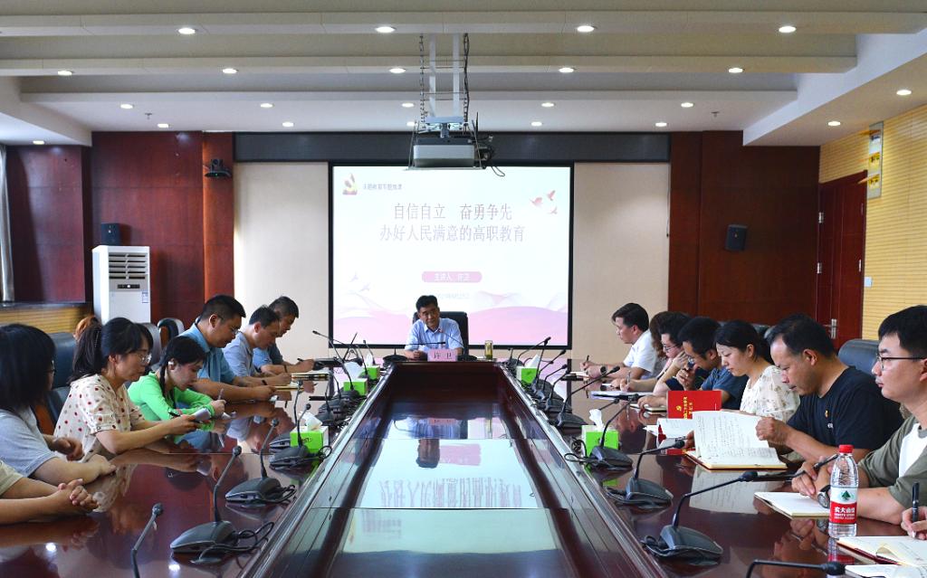 本网讯(党委宣传部:江涛 审核:佘东)根据学习贯彻习近平新时代中国特色社会主义思想主题教育部署要求,6月28日,党委书记许卫以《自信自立 奋勇争先 办好人民满意的高职教育》为题,为学院党员干部教师作主题教育专题党课报告,40多名党员干部教师聆听党课报告。