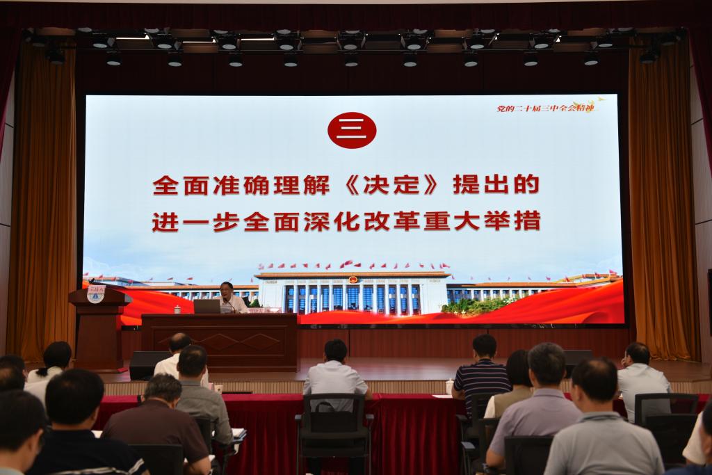 宣讲会上,朱学文围绕党的二十届三中全会的重要意义、深入学习领会习近平总书记在全会上的重要讲话精神、全面准确理解《决定》提出的进一步全面深化改革重大举措三个方面进行了系统宣讲和阐述,并结合习近平总书记关于教育的重要论述,对贯彻落实党的二十届三中全会精神和省委十一届七次全会精神提出要求。