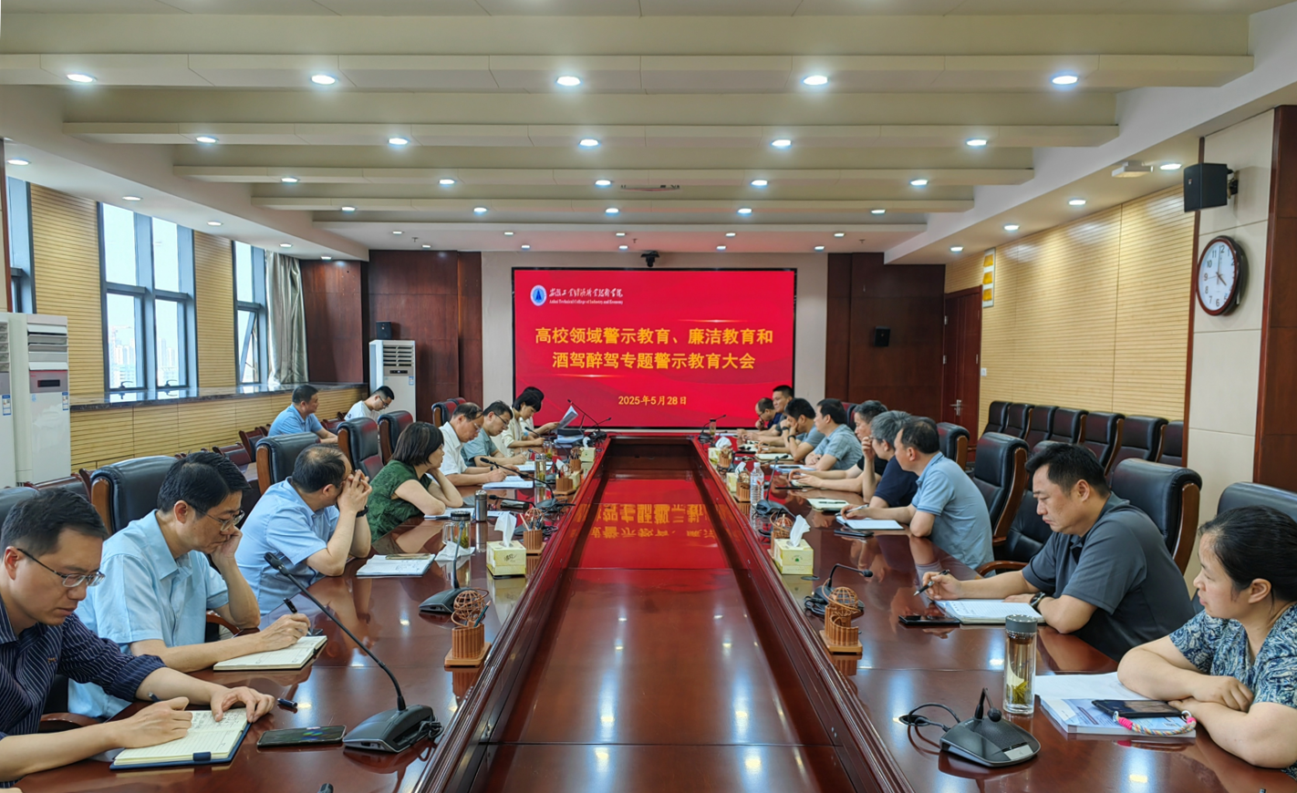 本网讯(纪委办公室:张腾 审核:柴建华 佘东)5月28日下午,学院召开高校领域警示教育、廉洁教育和酒驾醉驾专题警示教育大会,学院领导班子成员及中层以上干部参加。党委副书记、院长刘仁金作总结讲话,党委委员、纪委书记赵凯主持会议。