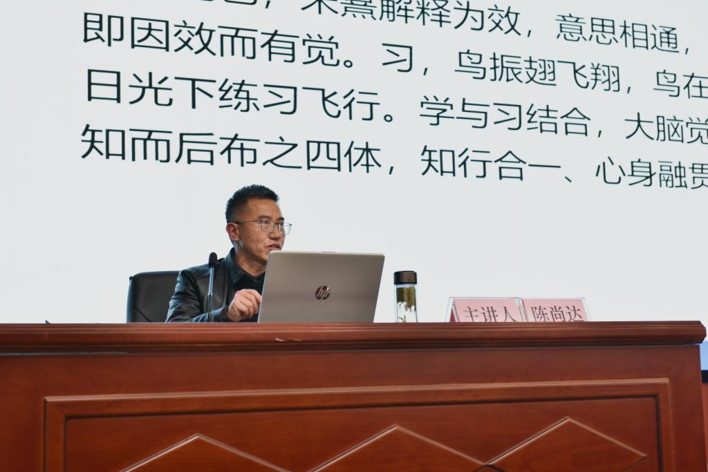 陈尚达教授在讲座中以《论语》为引,以旁征博引的论述和深入浅出的讲解为同学们阐述了儒家传统的君子之道及其养成路径,鼓励大家学为君子,成就个体生命的蓬勃气象和生存格局。围绕”何为君子“这一论题,陈尚达教授逐一剖析了君子、学习、道德、文化的繁体字形,为同学们分析了君子形象内蕴的三种精神品质——励志进取贵在专精的自我超越,修己安人贵在忠恕的伦理关怀,心怀天下贵在弘道的责任担当。陈教授提出,学为君子,儒家传统道德修养的路径遵循在于志道有恒、德行践履、乐道游艺,他鼓励同学们做更好自己、享受学习过程、崇尚学以致用,追求学为君子的美好生命体验。