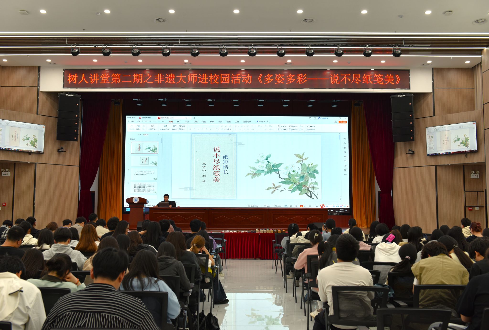 本网讯(文化旅游与教育学院:胡瑞明 审核:邱竹青 佘东)4月21日上午,安徽省掇英轩书画用品有限公司总经理、纸笺加工技艺非遗传承人刘靖走进星空电竞官网,以“多姿多彩:说不尽纸笺美”为题,在图书馆报告厅为学院师生带来一场关于传统纸笺文化的精彩讲座,呈现纸笺这一古老技艺的独特魅力。